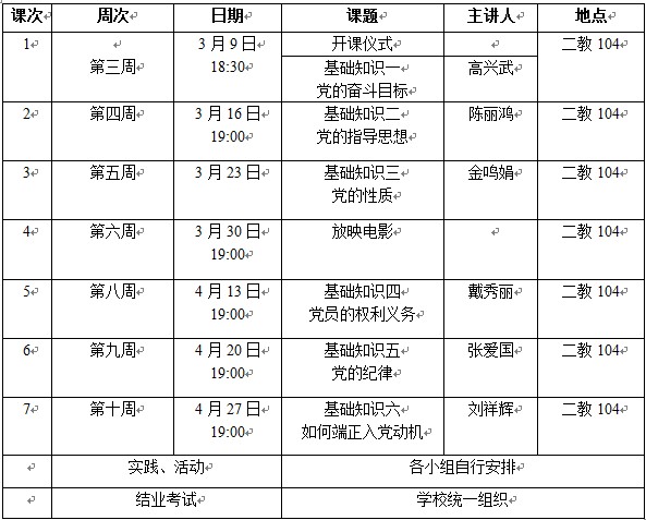 信息学院党校第52期初级班上课安排如下,请各学员按时上课。